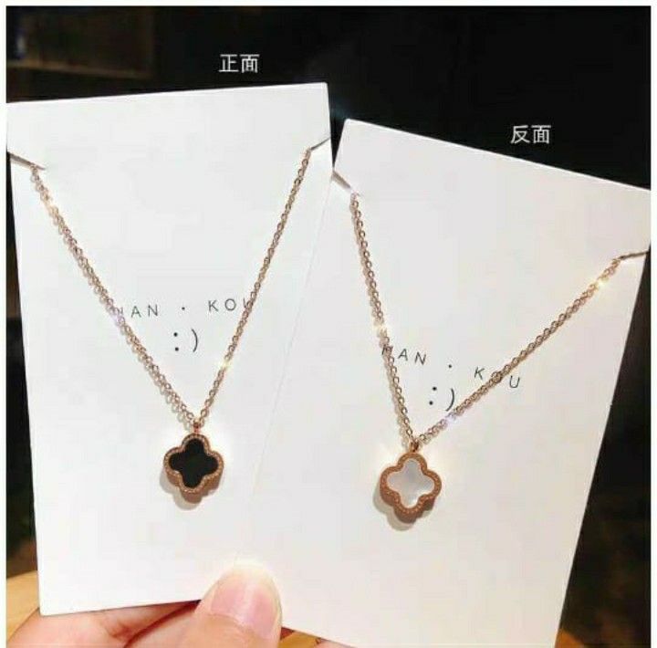 – Pendant Design: Four-leaf clover shape with a rose gold outline.
